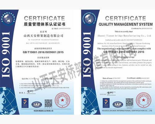 山西天安橋架制造有限公司是一家生產(chǎn)電纜橋架、母線槽的大型廠家,主要生產(chǎn):槽式橋架、托盤式橋架、梯級式橋架、大跨距橋架、母線槽有空氣型、密集型、耐火型、鋁合金等以及通風管、可根據(jù)客戶要求定制各種型號各種規(guī)格,表面處理有熱鍍鋅、防火噴塑、防火漆、熱鍍鋅等,產(chǎn)品廣泛應用于石油、化工、治金、電力、紡織、通訊、高層建筑等各個領域。產(chǎn)品具有外形美觀,耐腐蝕性強,安裝靈活方便,品種齊全等特點。